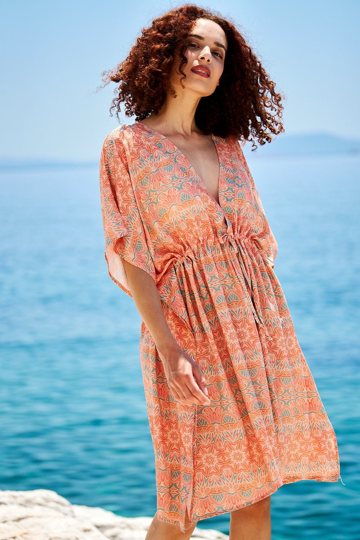 Κοντό καφτάνι της εταιρείας KOKKOSAMMOU. Είναι ιδανικό για την παραλία αλλά και για όλη την ημέρα για άνετες και στυλάτες εμφανίσεις